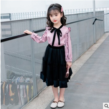 女童春裝2019新款兩件套韓版襯衫洋氣紗裙兩件套裙子小女孩兒童裝