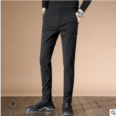 秋新款男士休閑純色小腳褲男韓版潮流青年春秋彈力修身長褲