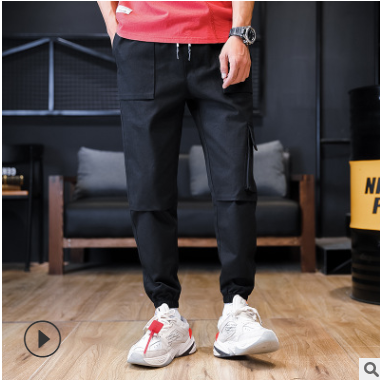 褲子男士韓版潮流春秋季國潮學生九分休閑運動寬松束腳工裝褲