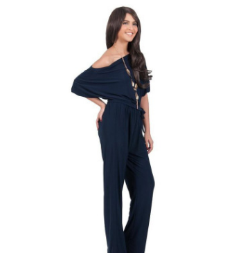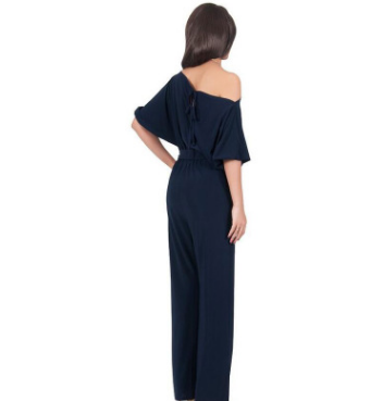 廠家直銷速賣通wish秋裝外貿(mào)爆款大碼女裝寬松一字領(lǐng)休閑連體褲