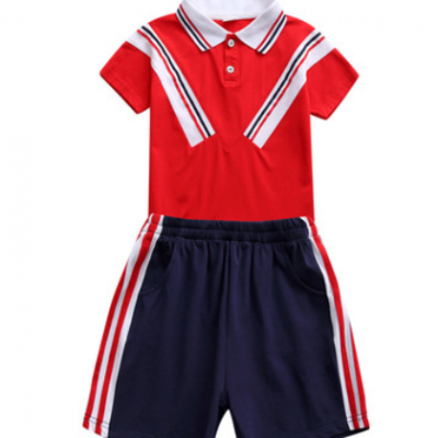 小學生班服夏季短袖紅色條紋運動套裝幼兒園園服夏裝畢業照服裝