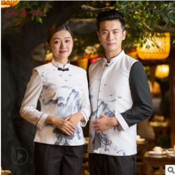 酒店餐廳服務員工作服長袖女中式餐飲飯店火鍋店茶樓制服秋冬裝