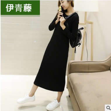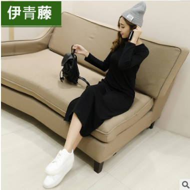 秋冬新款連衣裙女純棉加厚磨毛長袖裙子歐美百搭拖
