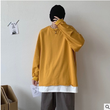 長袖t恤男上衣假兩件打底衫 春秋季新款韓版秋衣潮流寬松秋裝衛衣