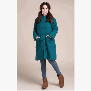 靜燃冬季款女裝民族手工扎染立領盤扣復古全開長款中式棉衣棉襖
