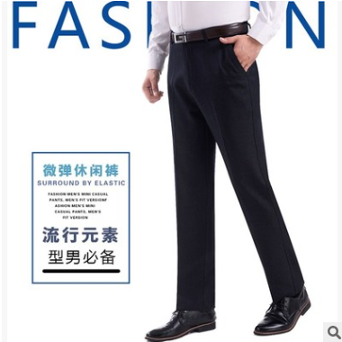 秋冬新款中青年男士休閑褲高腰深襠寬松直筒微彈舒適長褲子