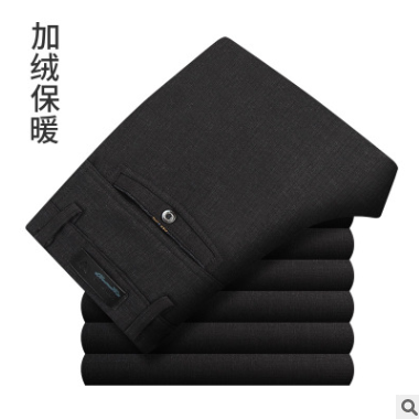 冬季男士加絨商務男褲直筒寬松中年西褲爸爸休閑褲