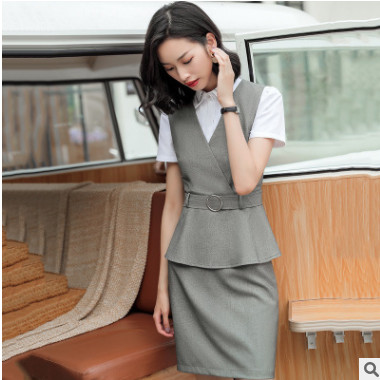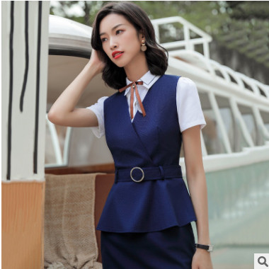 2019新款荷葉邊職業馬甲女夏時尚工作服套裝定制現貨正裝馬夾定做