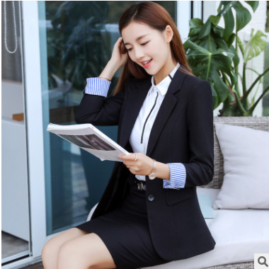 女西服韓版套裝2019修身新款女職業裝定制長袖職員工作服外套定做