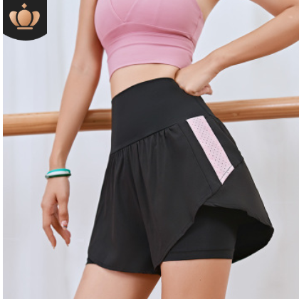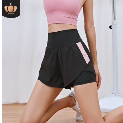 2020新款高腰速干健身瑜伽褲假兩件緊身褲休閑跑步運動短褲女