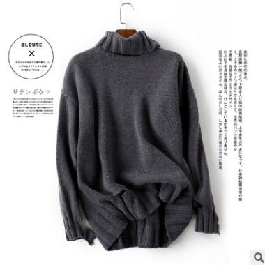 2019秋季高領(lǐng)袖子割破顯瘦長袖針織衫打底衫女毛衣羊毛衫一件代發(fā)