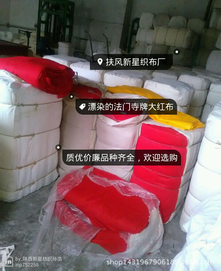 陜西新星紡織有限公司,扶風(fēng)新星織布廠常年生產(chǎn)全棉,滌棉白坯布和工裝布,深加工各種大紅布,黃布,綠布,藍(lán)布,粉紅布,代客戶加工印染各種色布,漂白布。新星織布,經(jīng)誠緯義,誠信做人,用心做事,以儒論商,互惠雙贏,精質(zhì)興業(yè),誠信活商,質(zhì)優(yōu)價(jià)廉,歡迎選購!聯(lián)系人:孫浩,13609178979微信13289185999