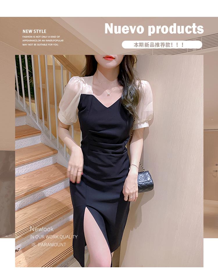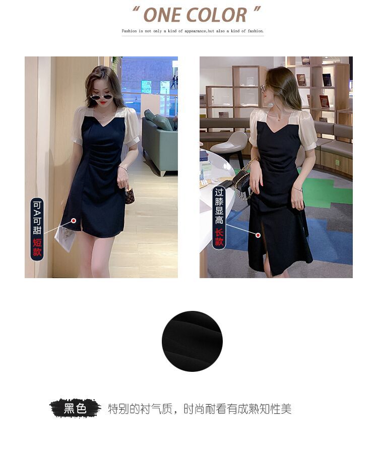 實拍短袖連衣裙2021夏季新款法式超仙溫柔復古開叉中長款仙女裙子