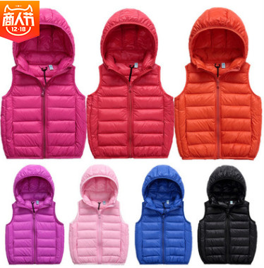 秋冬新款連帽糖果色兒童羽絨馬甲輕薄款童裝馬夾背心外套潮