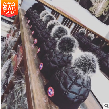 親子款真狐貍毛球羽絨帽秋冬帽子寶寶媽媽親子帽一件代發