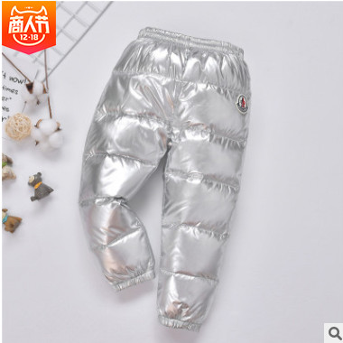 2018冬季新款兒童面包服羽絨褲大中小男女童太空銀色加厚外穿長褲