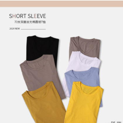 2020夏季新款70支雙面絲光棉圓領(lǐng)短袖T恤女V領(lǐng)純棉純色半袖t恤