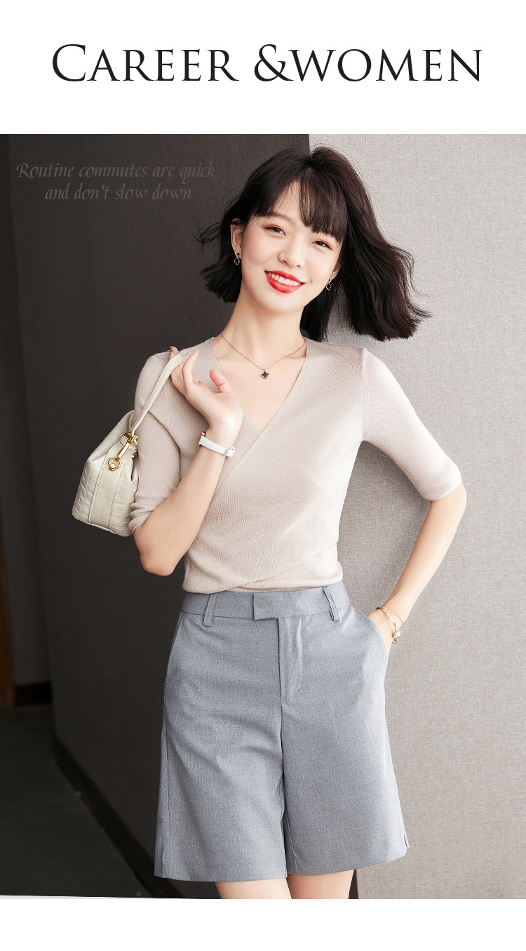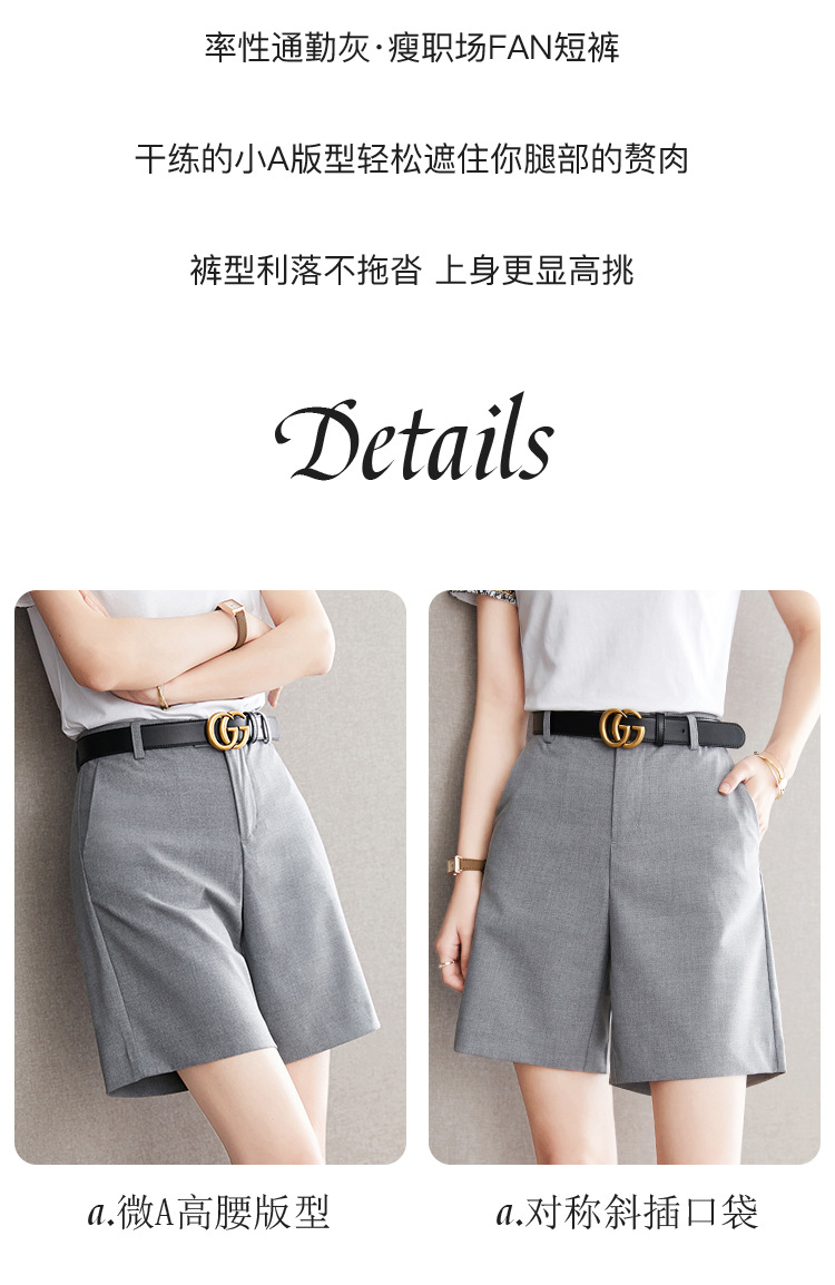 2021夏新款五分褲利落精英Chic!純色提臀顯瘦 高腰休閑西裝短褲