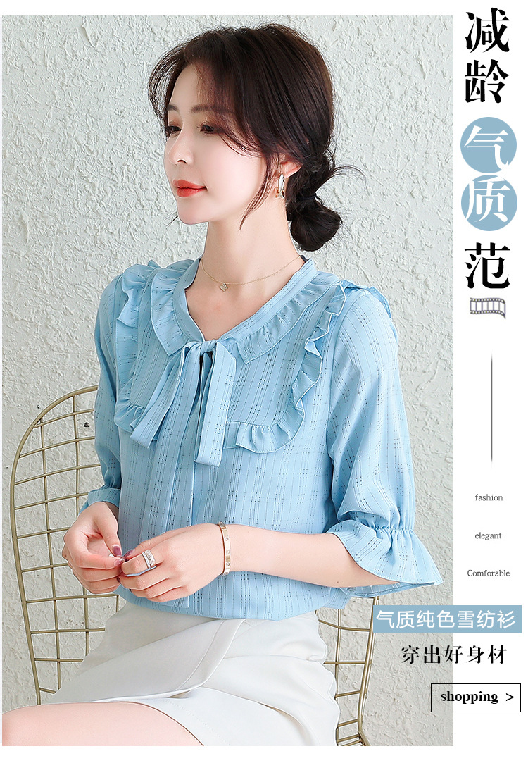 雪紡衫女短袖夏季2021年新款蝴蝶結(jié)上衣服設(shè)計(jì)感小眾時(shí)尚襯衫