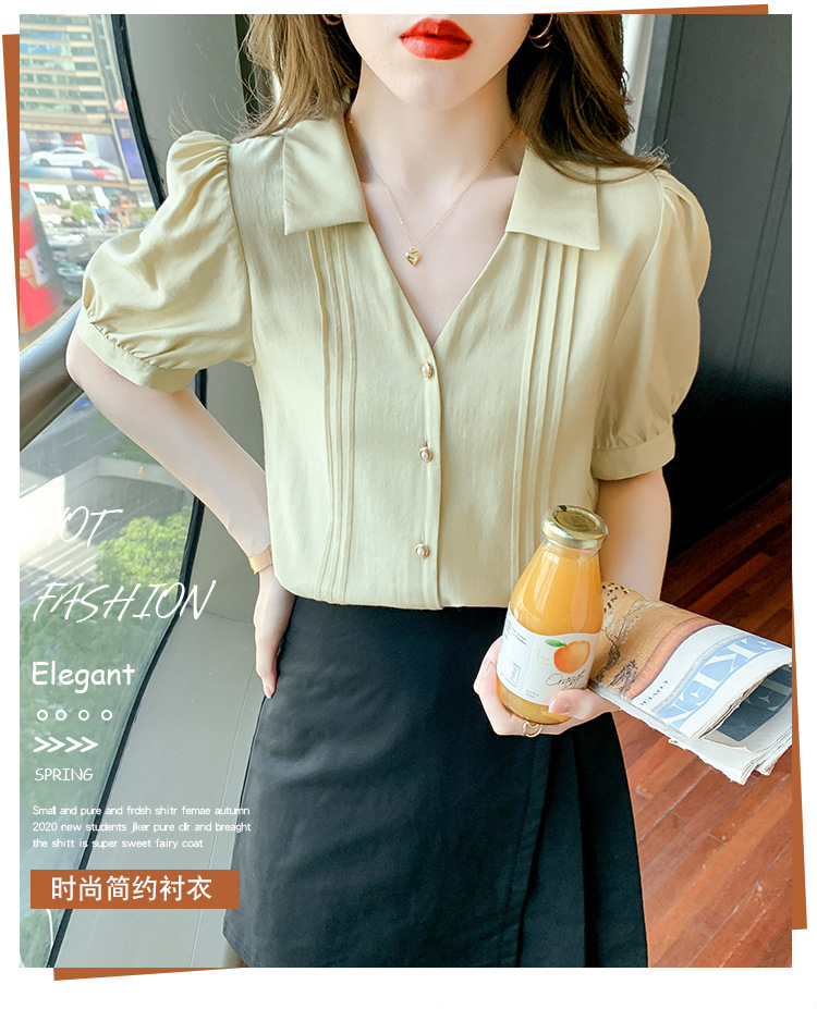 泡泡袖襯衫小眾女2021夏季新款百搭v領(lǐng)短袖薄款女士小上衣