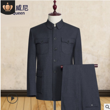 男士中老年中山裝套裝春秋裝中山裝套裝翻領(lǐng)爸爸爺爺裝中山服