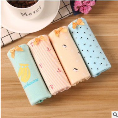 4條組合裝女士內褲棉質盒裝卡通印花全棉女式內褲 低腰可愛三角褲