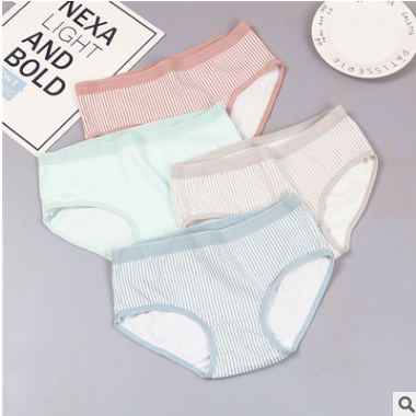 新品夏薄爆款棉質女士內褲條紋舒適中腰女式三角褲日系大碼內褲女