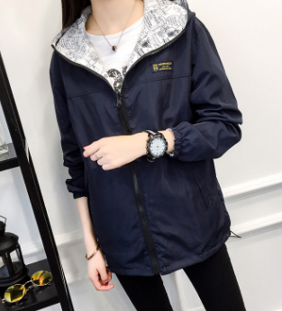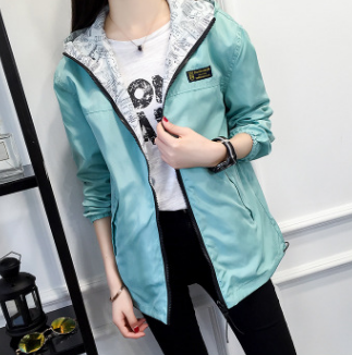 廠家直銷2019春秋外貿韓版兩面穿風衣女連帽寬松短款外套女學院風