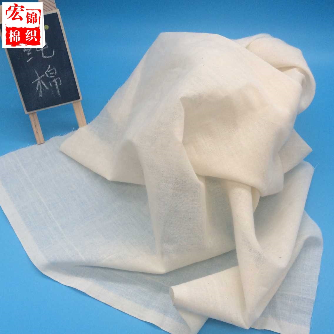 純棉漂白布料特點:顏色純白(就像A4紙的顏色),布上無黑點,經過了初步的加工,手感更好。