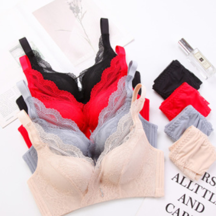 內(nèi)衣女無鋼圈薄款小胸聚攏調(diào)整型收副乳胸罩性感蕾絲美背文胸套裝