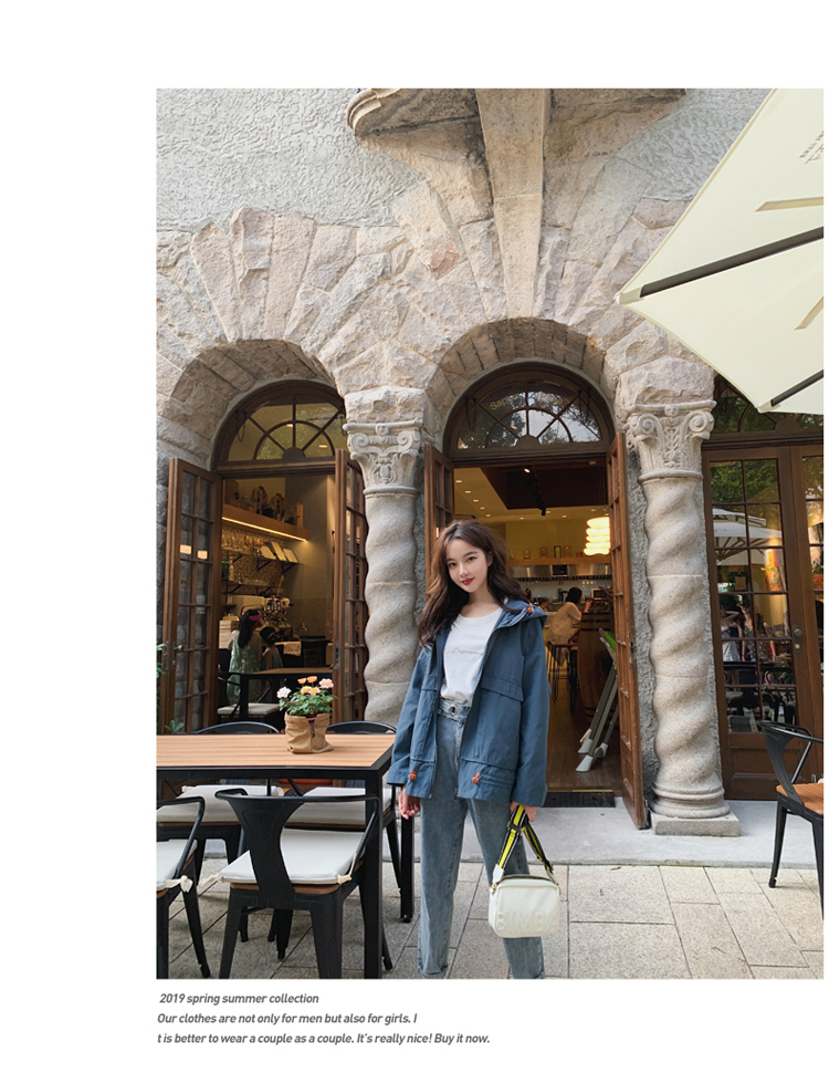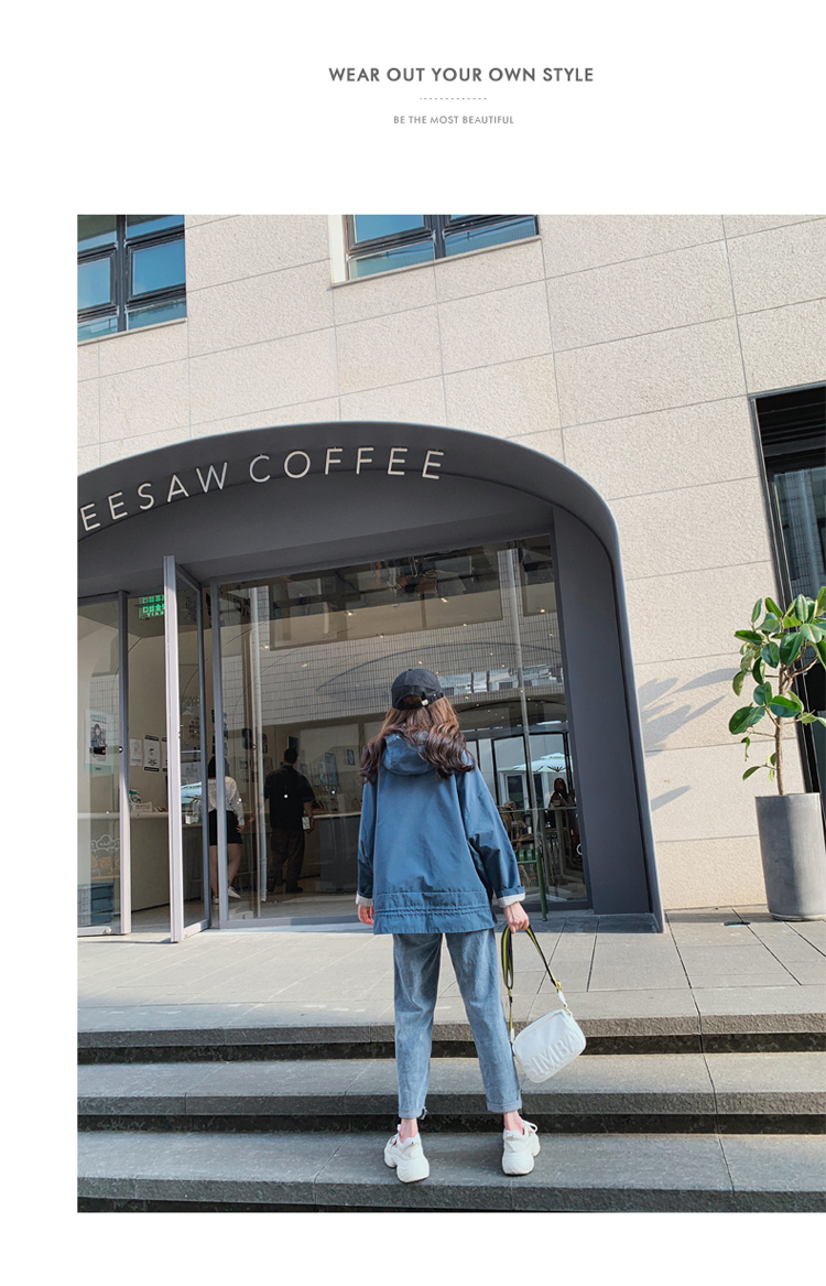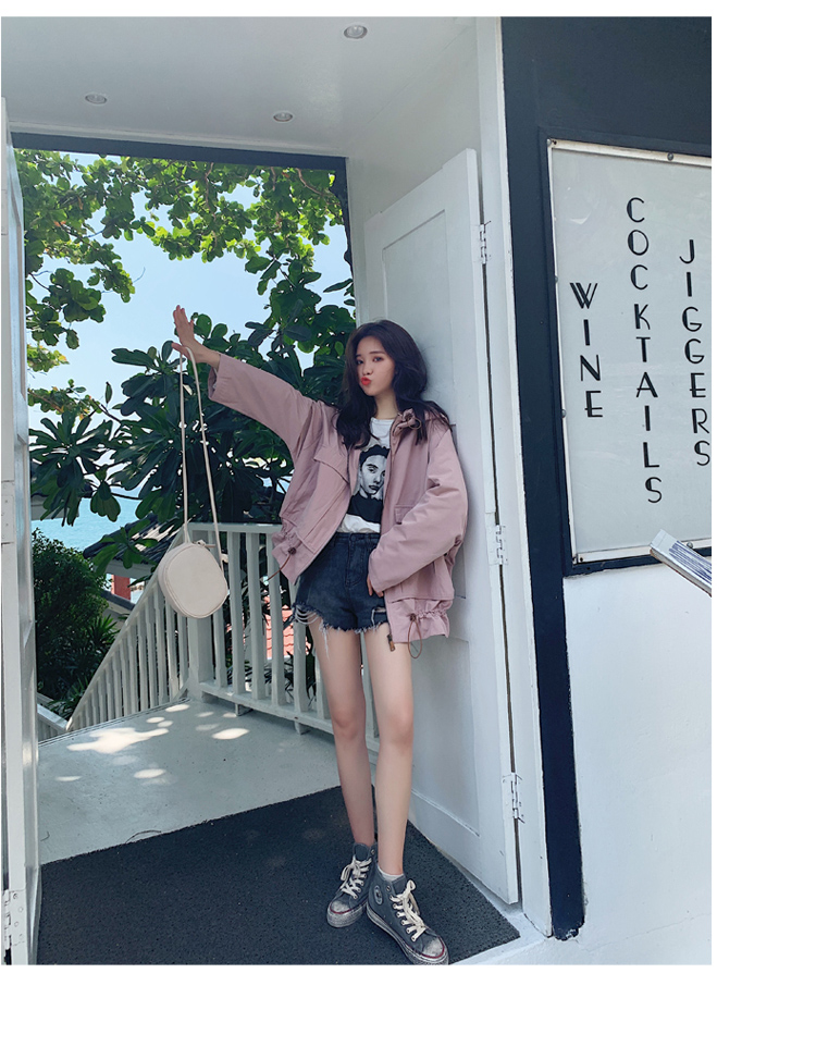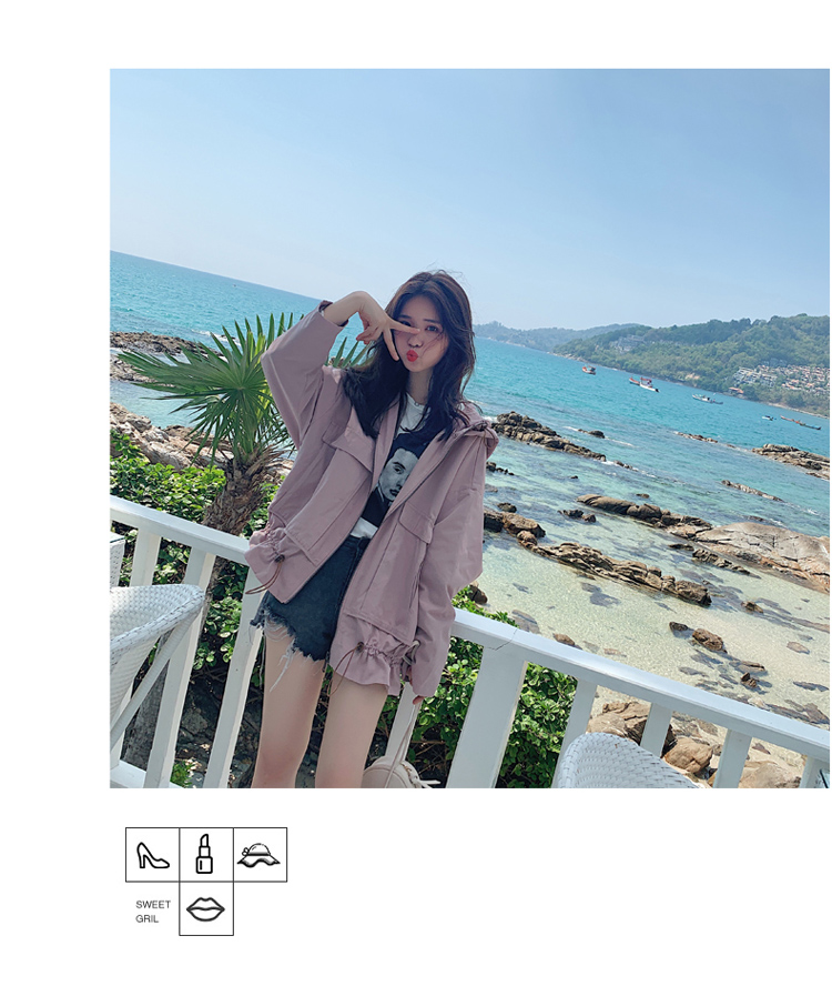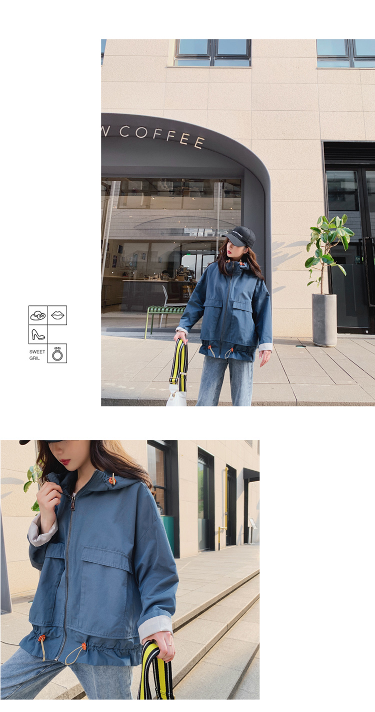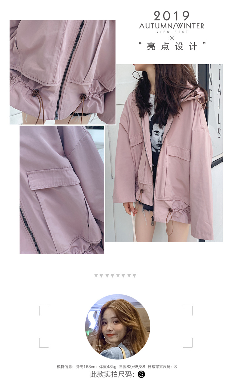 女秋季青春蝙蝠袖小個子外套學生新款連帽寬松中長款抽繩時尚風衣