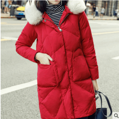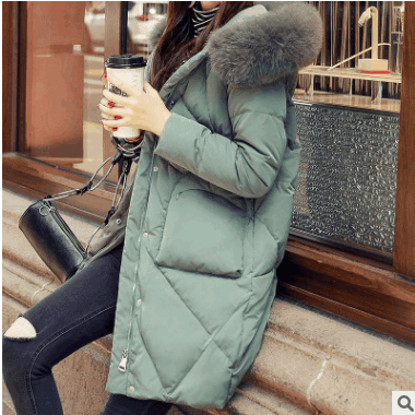 加工定制 新款連帽羽絨棉服外套女中長款棉襖子大毛領棉衣外收腰