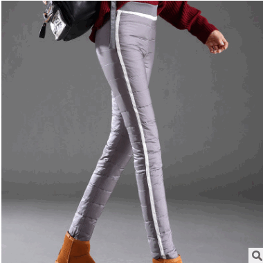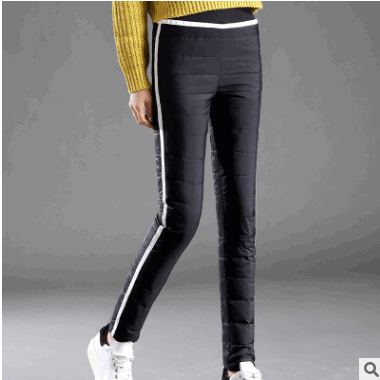 加厚條紋運動褲2019春秋新款長褲女大碼黑色高腰彈力直筒休閑褲女