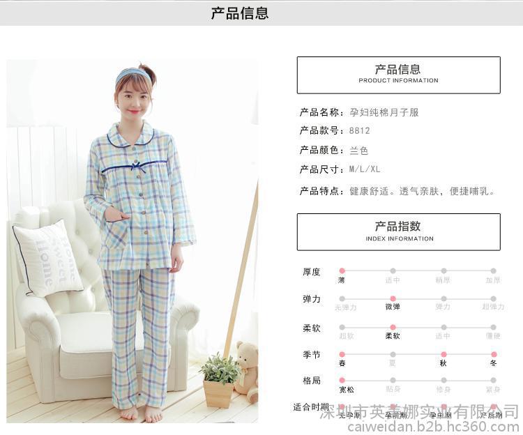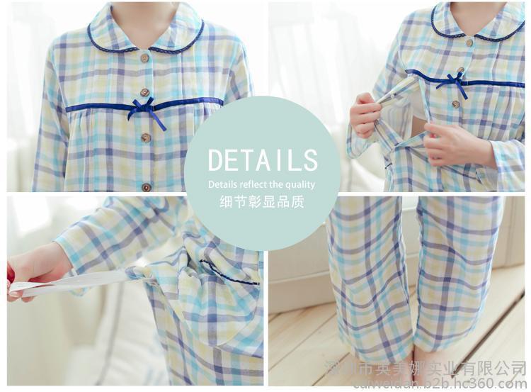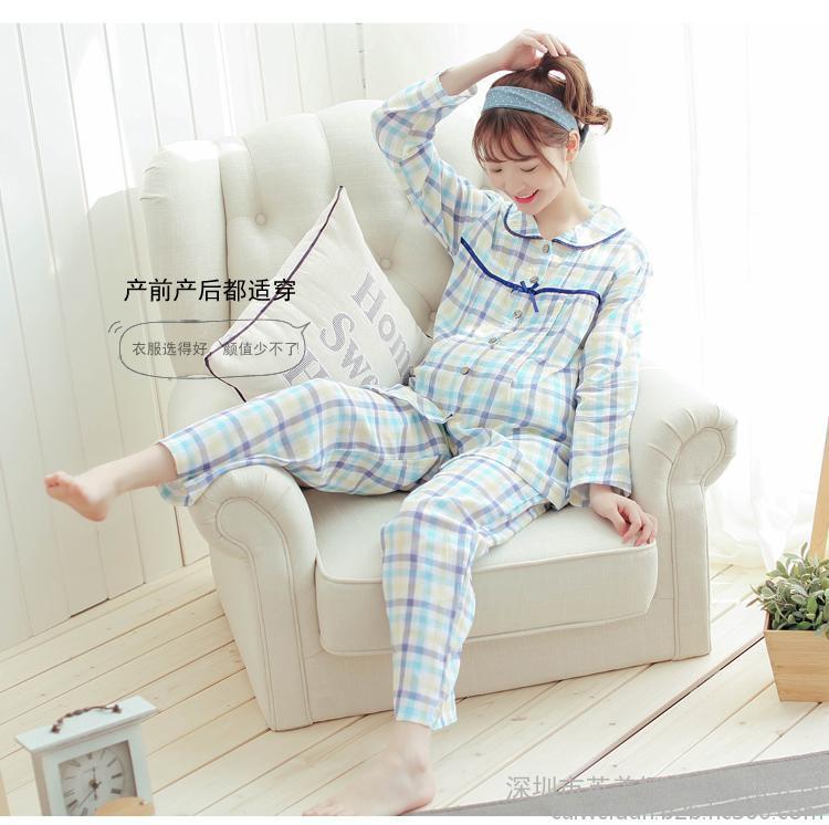 孕相事成8812春夏新款月子服全棉長袖雙層全棉紗布孕婦睡衣哺乳衣