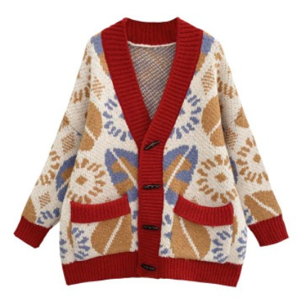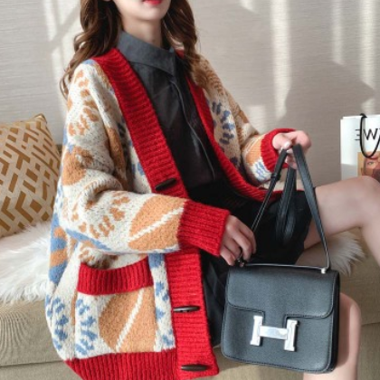 毛衣外套女2020秋冬新款女裝寬松百搭V領牛角扣開衫慵懶風加厚潮