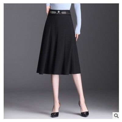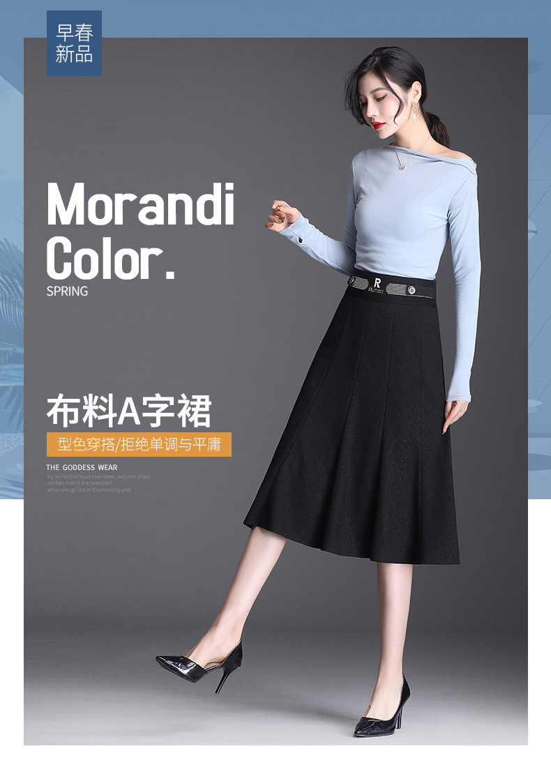 黑色半身裙女百搭2020春季新款高腰顯瘦a字大擺裙百褶裙中長款