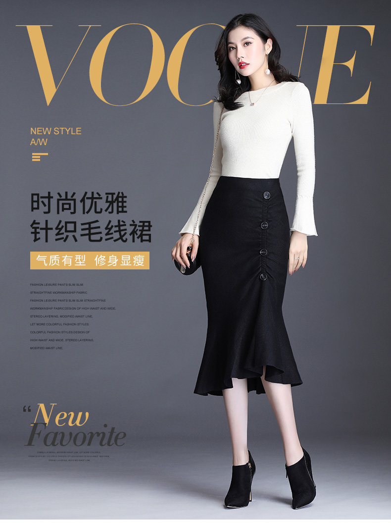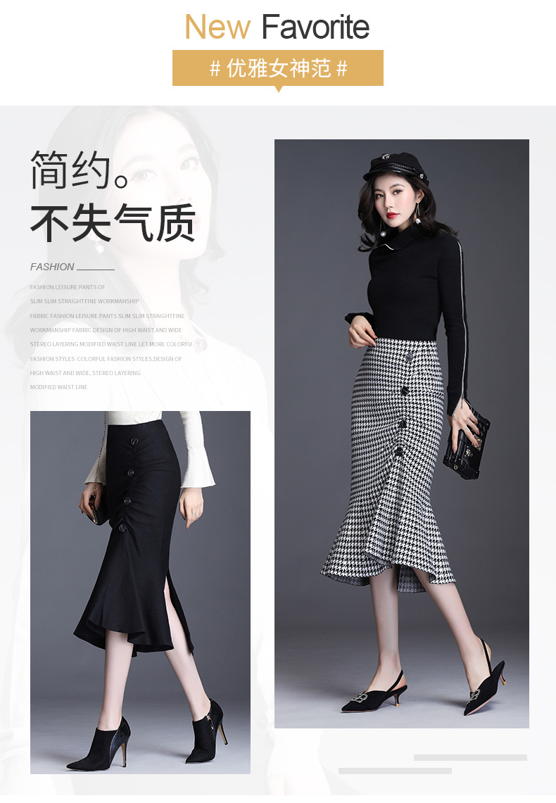 針織半身裙秋冬女格子性感不規則中長款開叉魚尾裙包臀裙毛線裙子