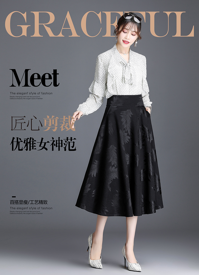 2020春夏半身裙長裙女刺繡花中長款A字裙復古大擺裙大碼百褶裙子