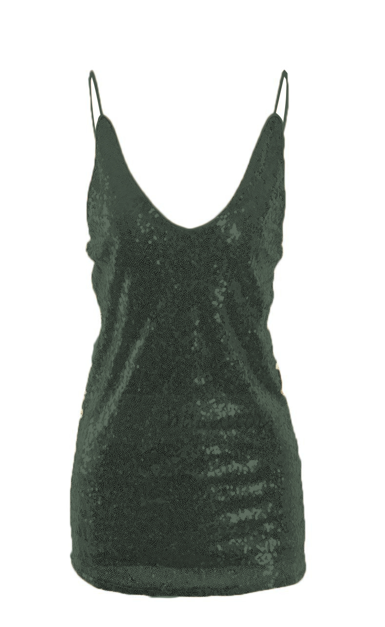 速賣通歐美外貿性感金色亮片細吊帶修身百搭V領無袖背心女