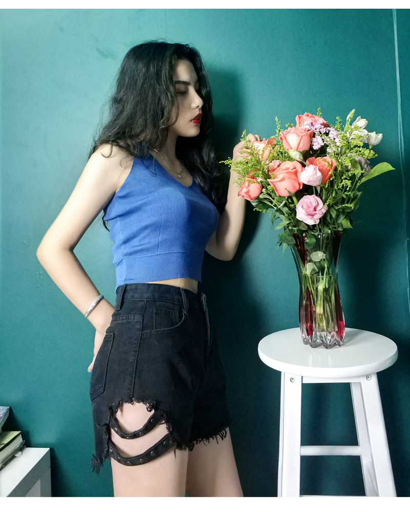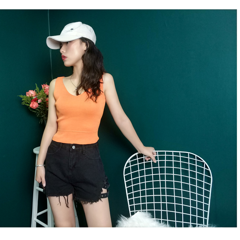 實拍2019春夏季新款短款性感v領(lǐng)針織打底小吊帶背心修身無袖上衣