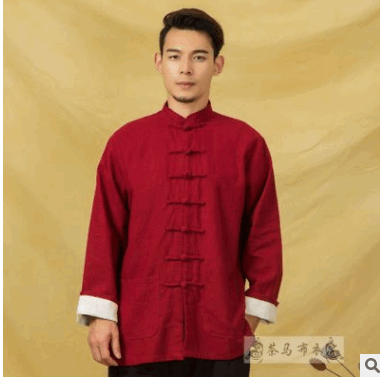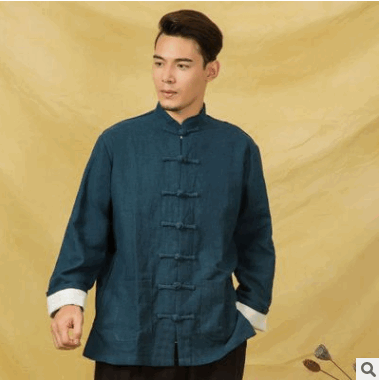 2017民族風男式棉麻中式盤扣長袖襯衫2017款休閑純色立領外套男