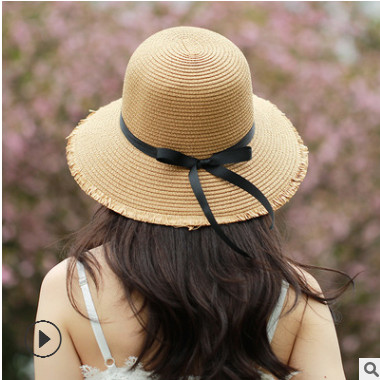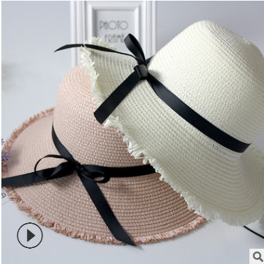 韓版男女帽子夏款時(shí)尚純色切邊帽休閑防曬遮陽(yáng)帽街頭百搭蝴蝶結(jié)帽