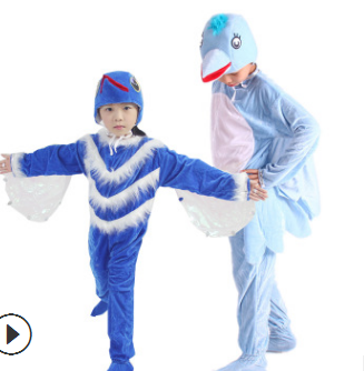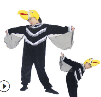 新款促銷學(xué)生兒童舞臺動物演出服黃鸝藍(lán)翎鳥啄木鳥成人親子表演服