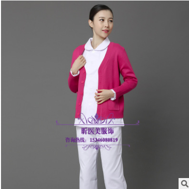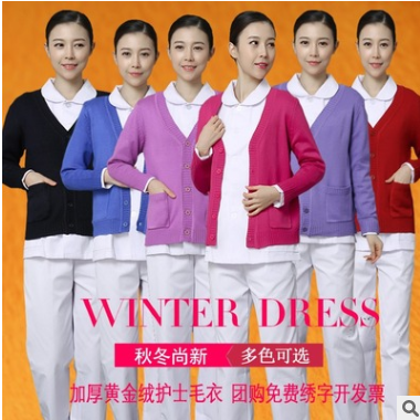 廠家直銷醫生服護士毛衣開衫加絨藏藍色V領針織短款修身加厚保暖