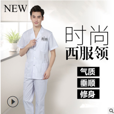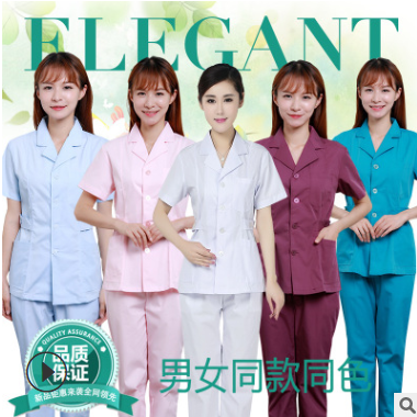 護士服分體套裝短袖粉藍色男夏裝定做牙科醫生服養老院護工工作服