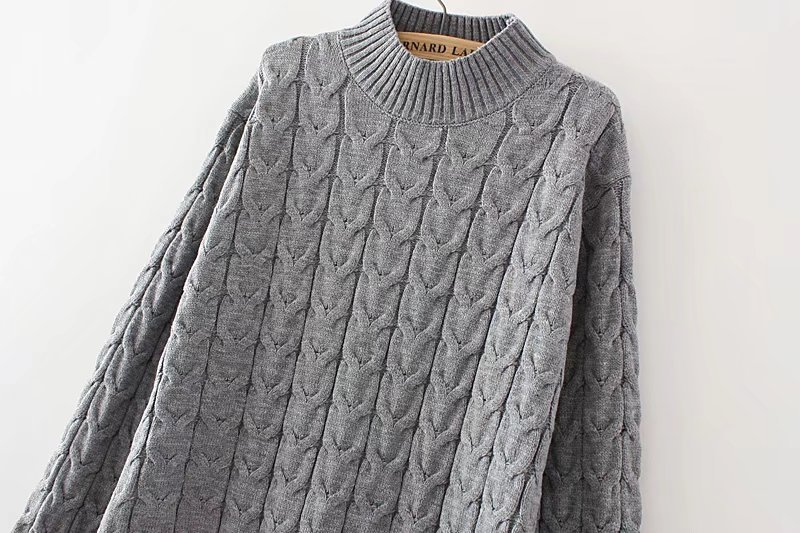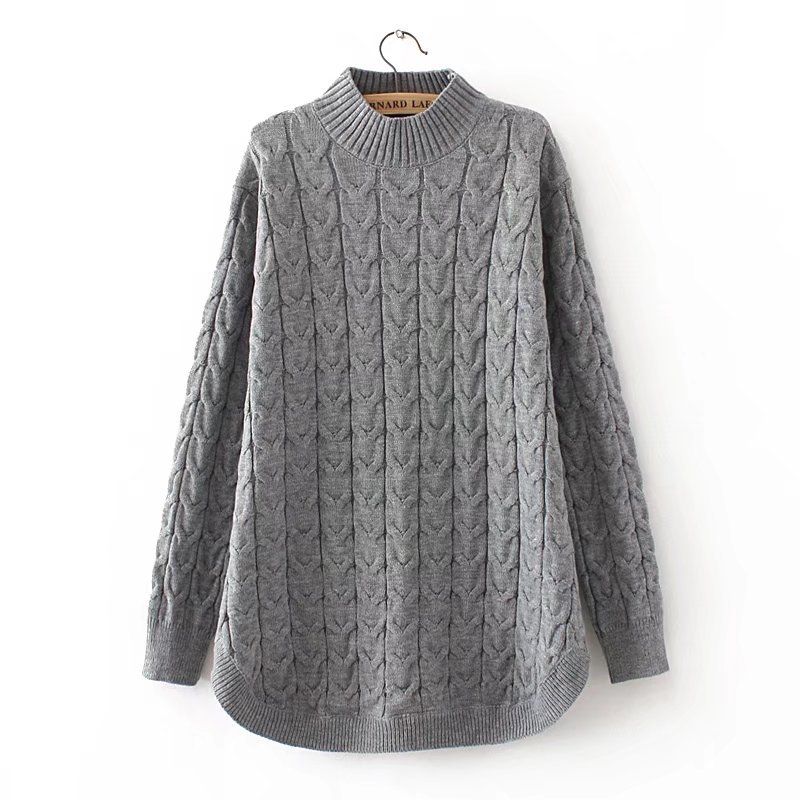 E2大碼女裝2017秋冬新款胖mm顯瘦半高領中長款麻花毛衣7546