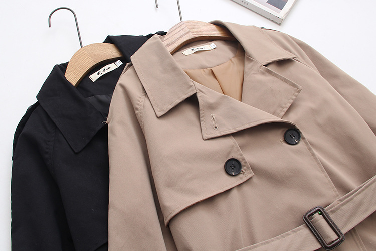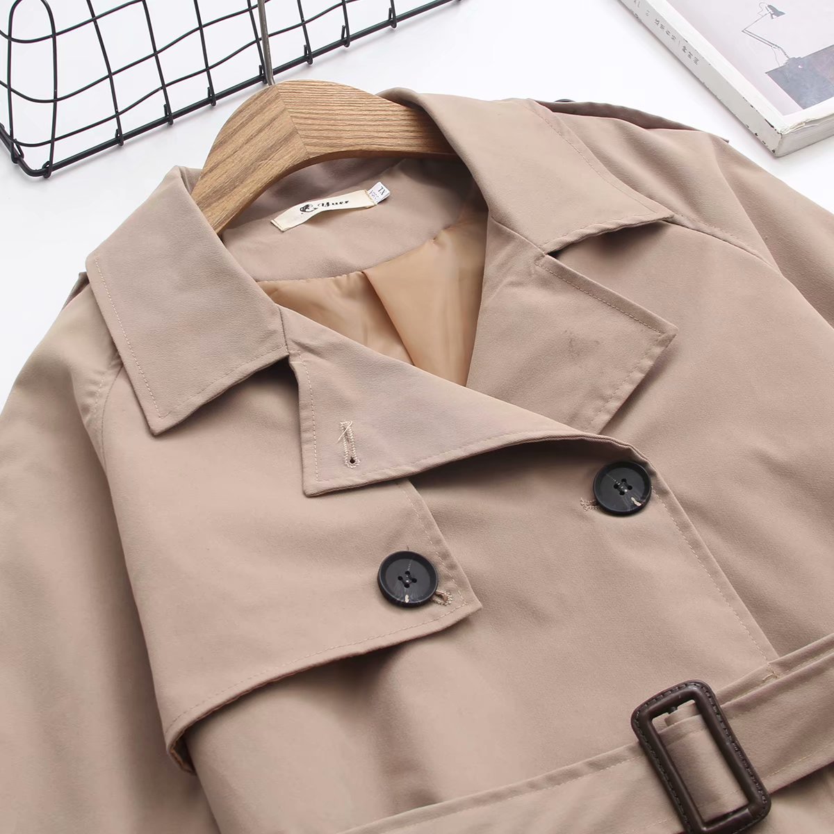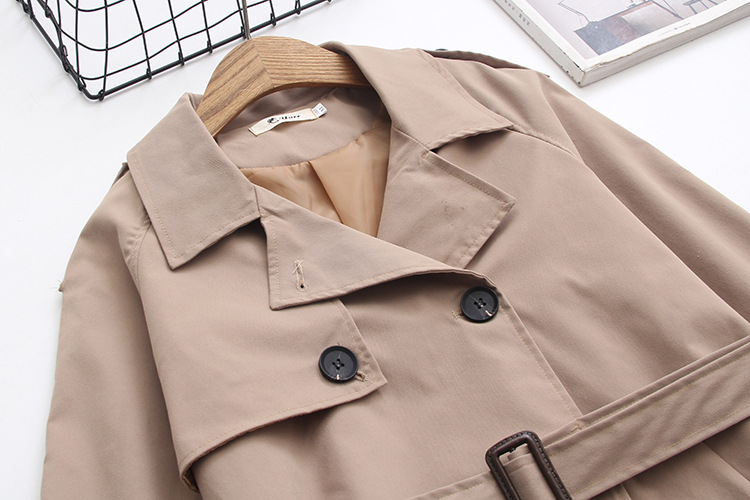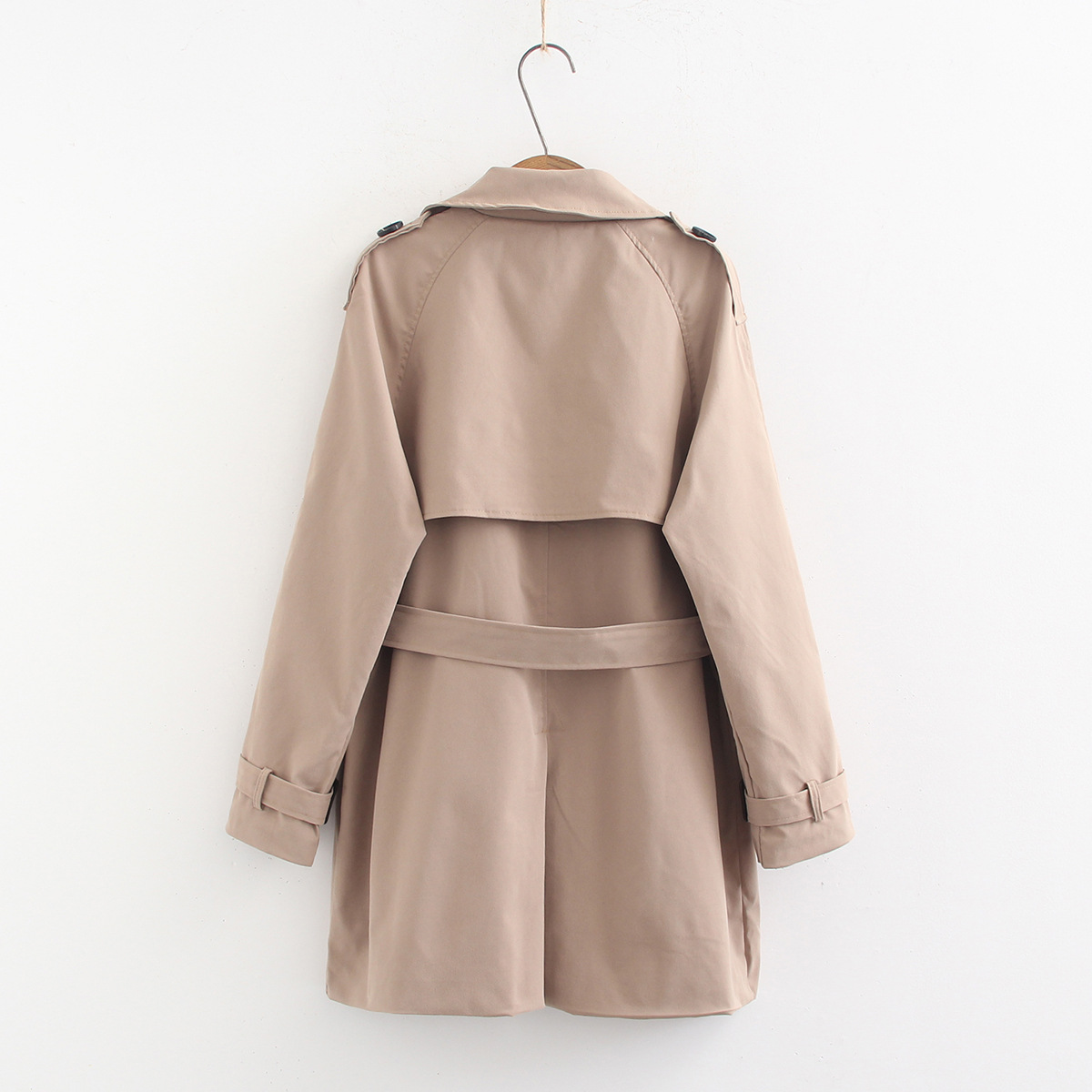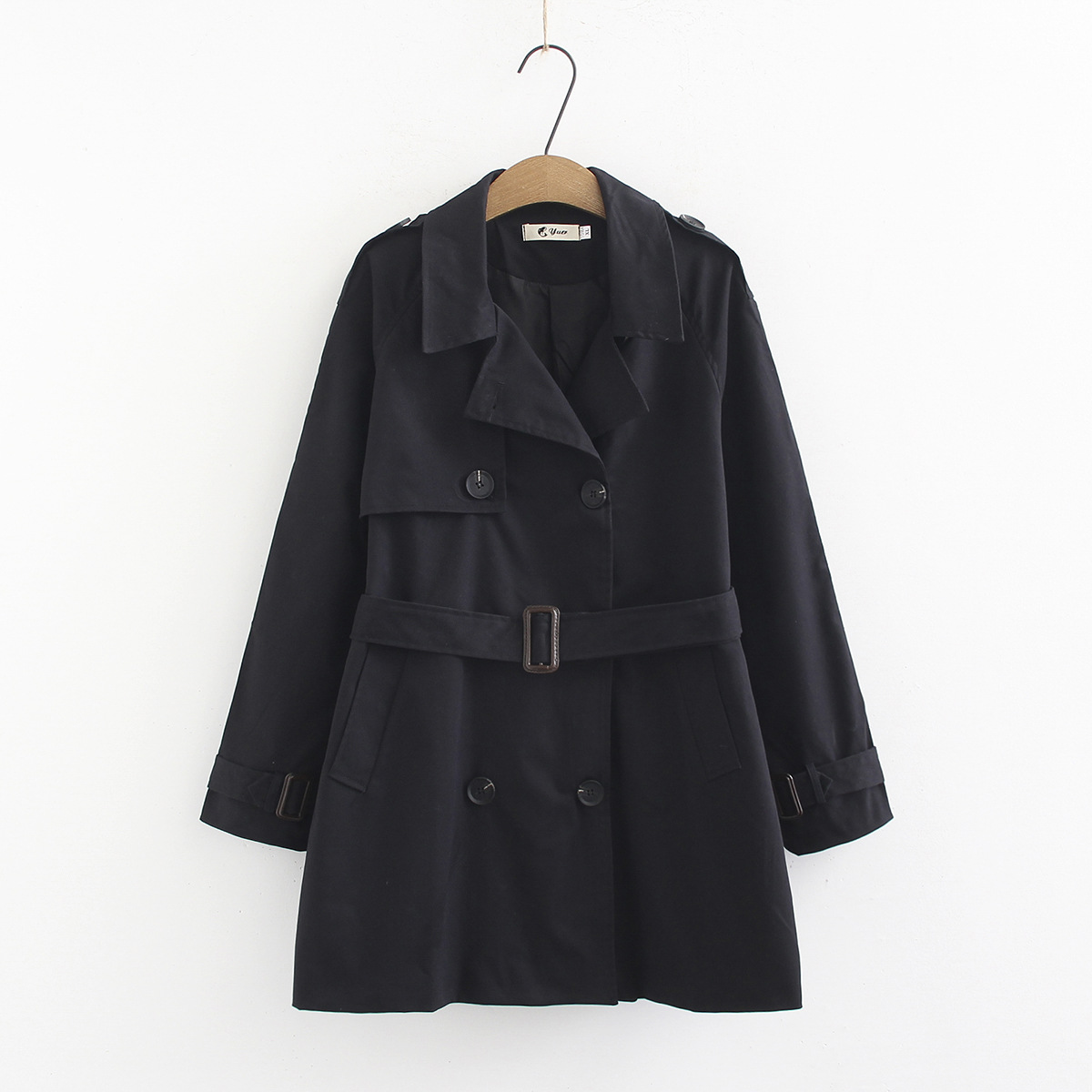 A0春裝新款2019大碼女裝加肥加大胖MM雙排扣系帶中長款風衣1007