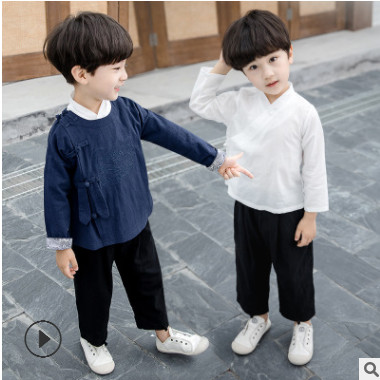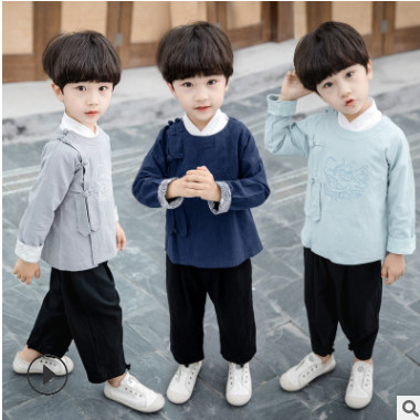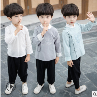 男童漢服套裝2019春秋新款中國風古裝兒童童裝寶寶復古唐裝三件套