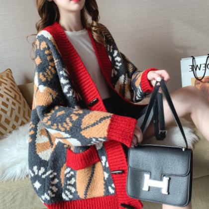 韓版毛衣外套女春秋2020新款寬松百搭牛角扣針織開衫慵懶風加厚