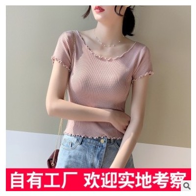 首頁 > 供應產品 > 針織冰絲短袖t恤女2020夏季新款修身荷葉領木耳邊高腰短款上衣